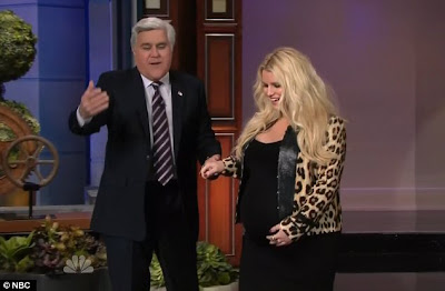Earlier in the show before the heavily pregnant stepped on the stage Leno introduced her by saying: 'She’s about to have a baby at any minute.'